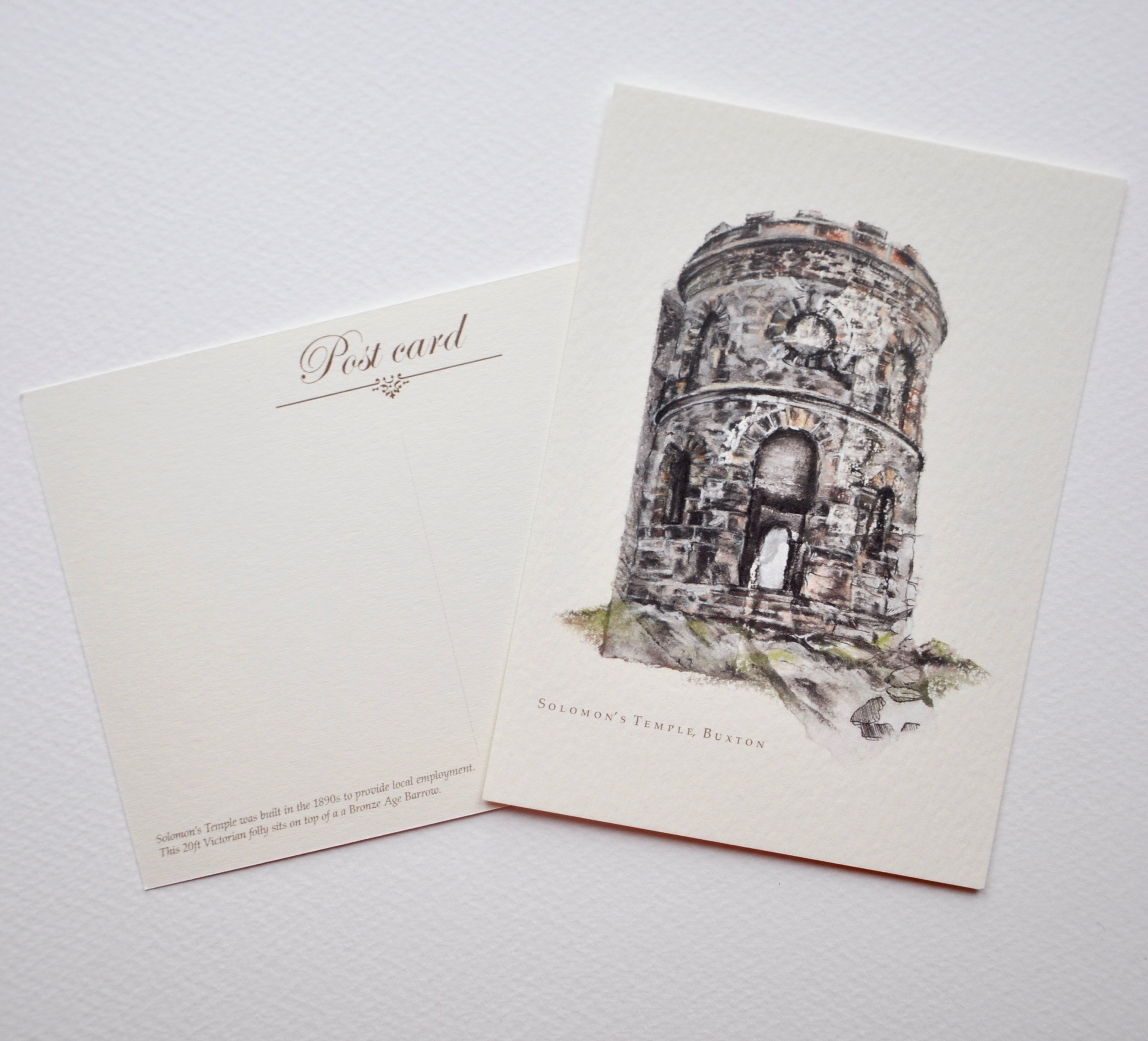 Mini Print of Solomon’s Temple, Buxton by Rebecca Clitheroe in postcard format.