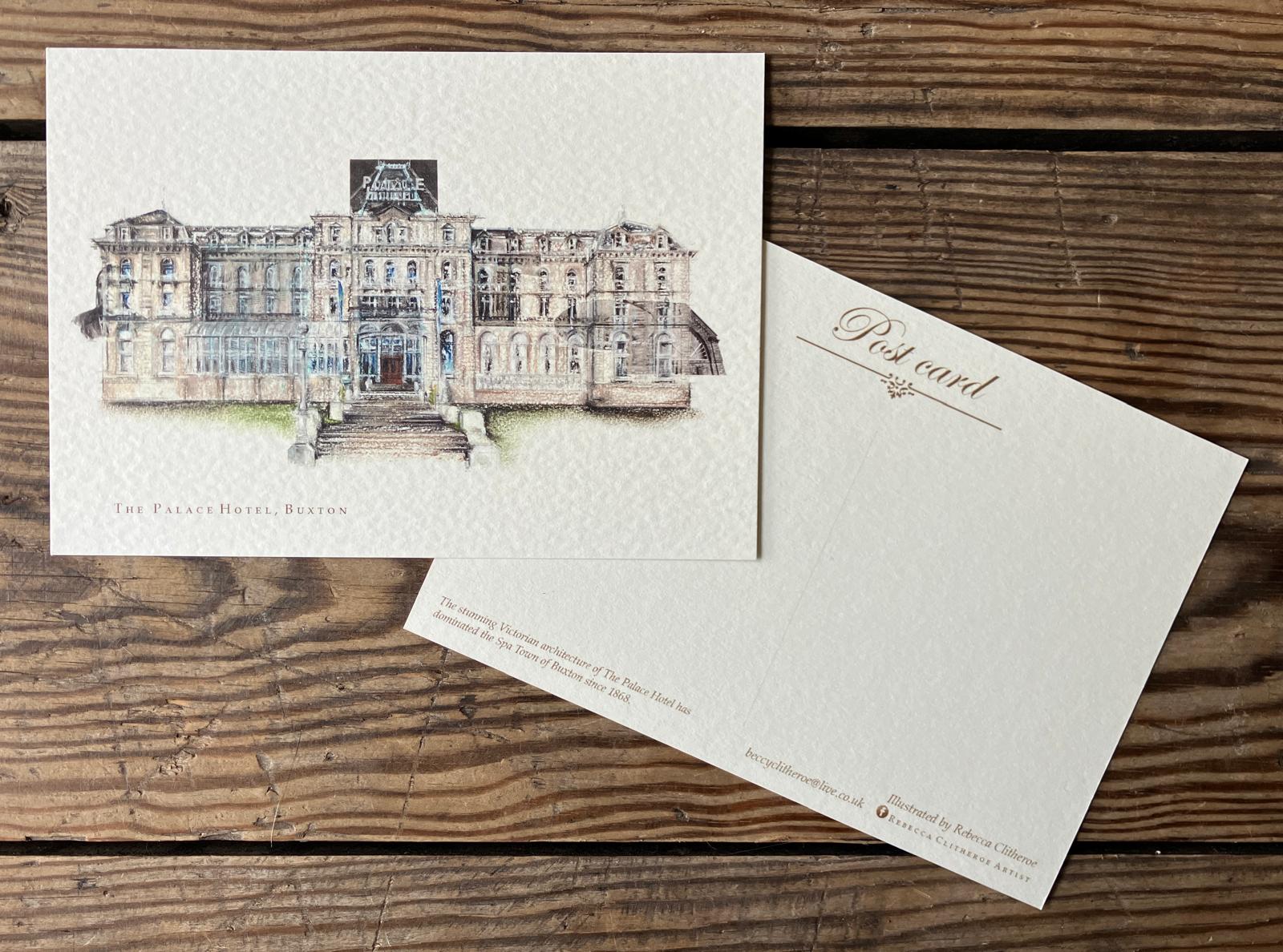 Mini Print of The Palace Hotel, Buxton by Rebecca Clitheroe in postcard format.